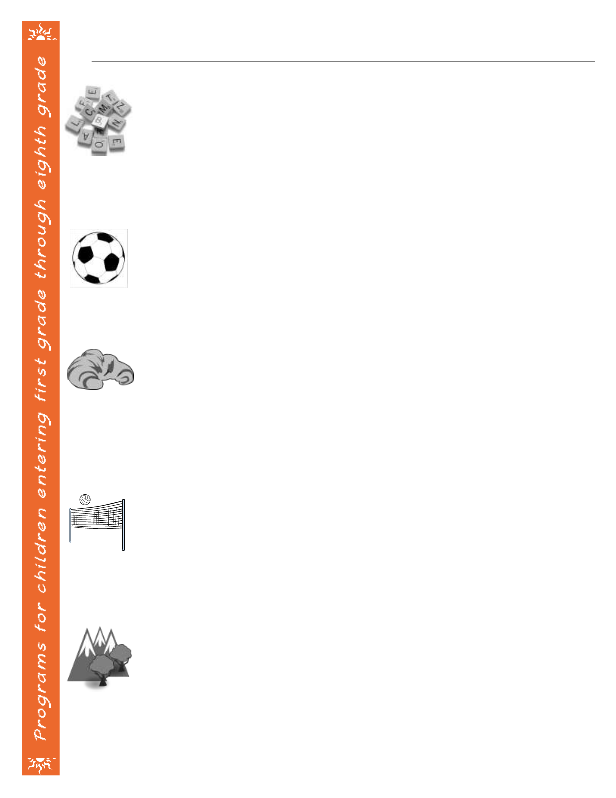volleyball. Campers will learn the basic techniques necessary for a player or a team to enjoy the game: passing,